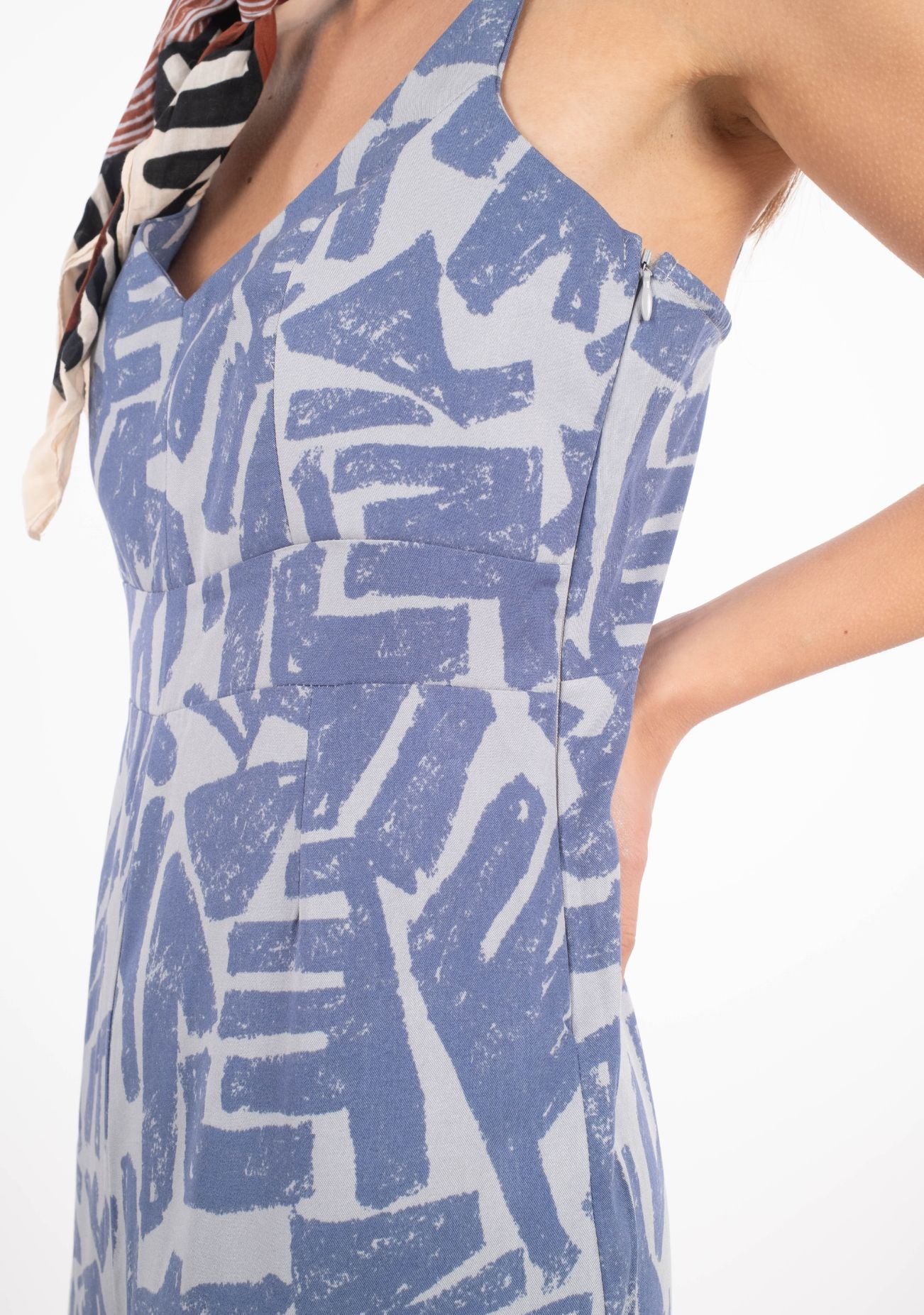 Este enterito combina estilo y comodidad con un pantalón palazzo, ideal para adaptarse a distintos tipos de cuerpos. Su escote en V realza el cuello, mientras que los tirantes ajustables, el elástico en la espalda y el cierre lateral aseguran un ajuste perfecto.