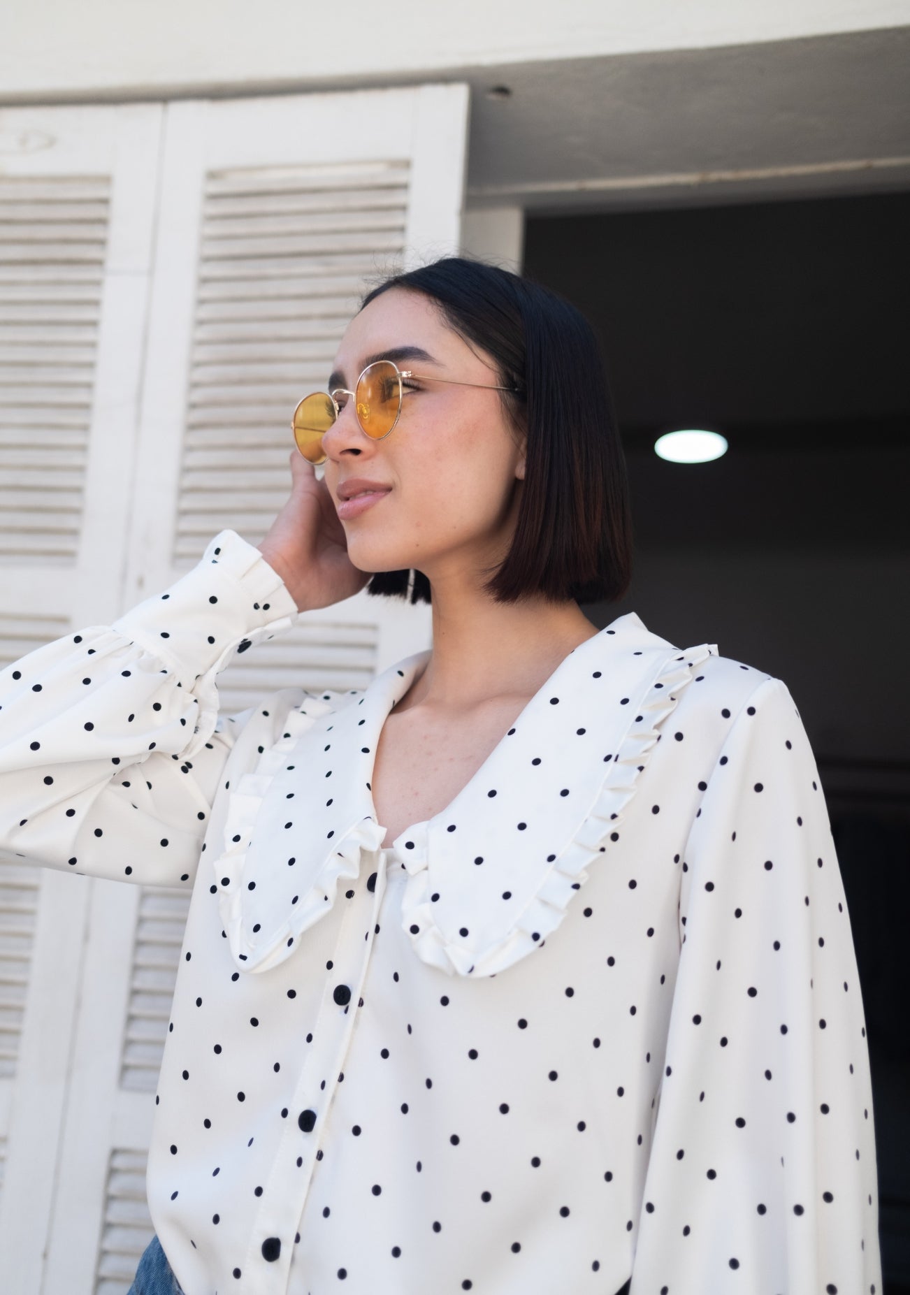 Las blusas de esta colección llevan cuellos redondos, tejidos suaves y detalles que nos recuerdan a ellas. Pero también las reimaginamos: con cortes actuales, un cuello en V que estiliza tu cuerpo, libertad de movimiento y el cuerpo presente, sin disculpas.