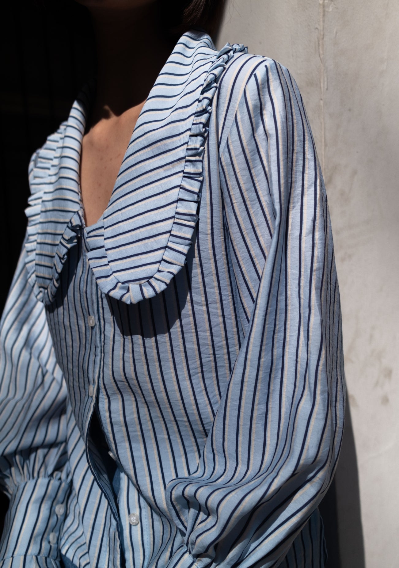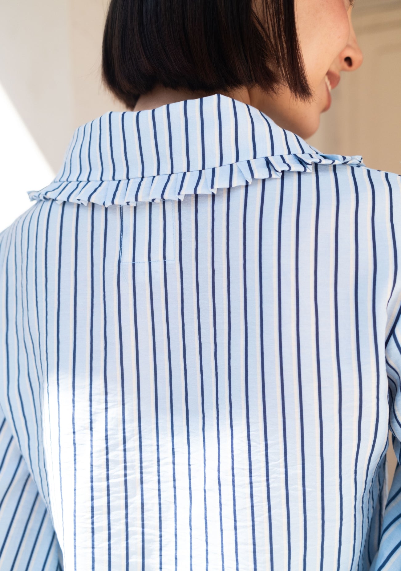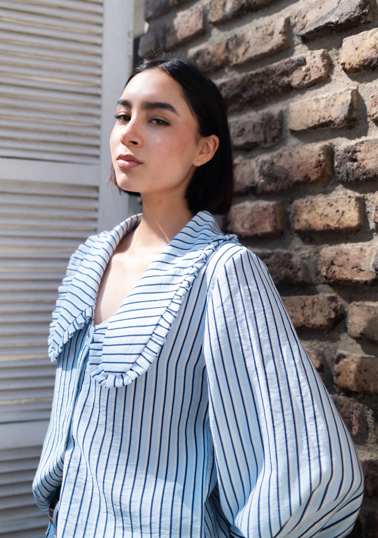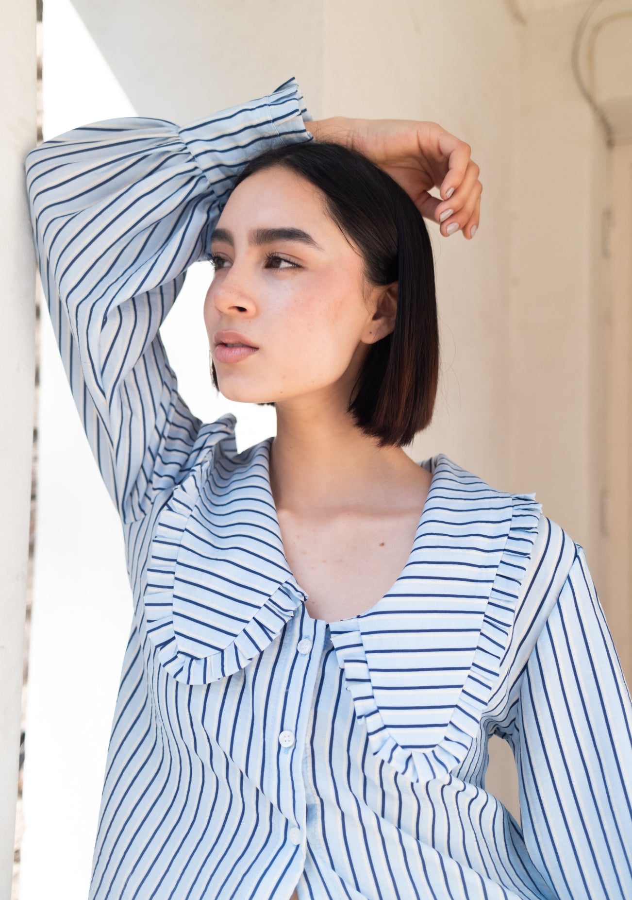 Las blusas de esta colección llevan cuellos redondos, tejidos suaves y detalles que nos recuerdan a ellas. Pero también las reimaginamos: con cortes actuales, un cuello en V que estiliza tu cuerpo, libertad de movimiento y el cuerpo presente, sin disculpas.