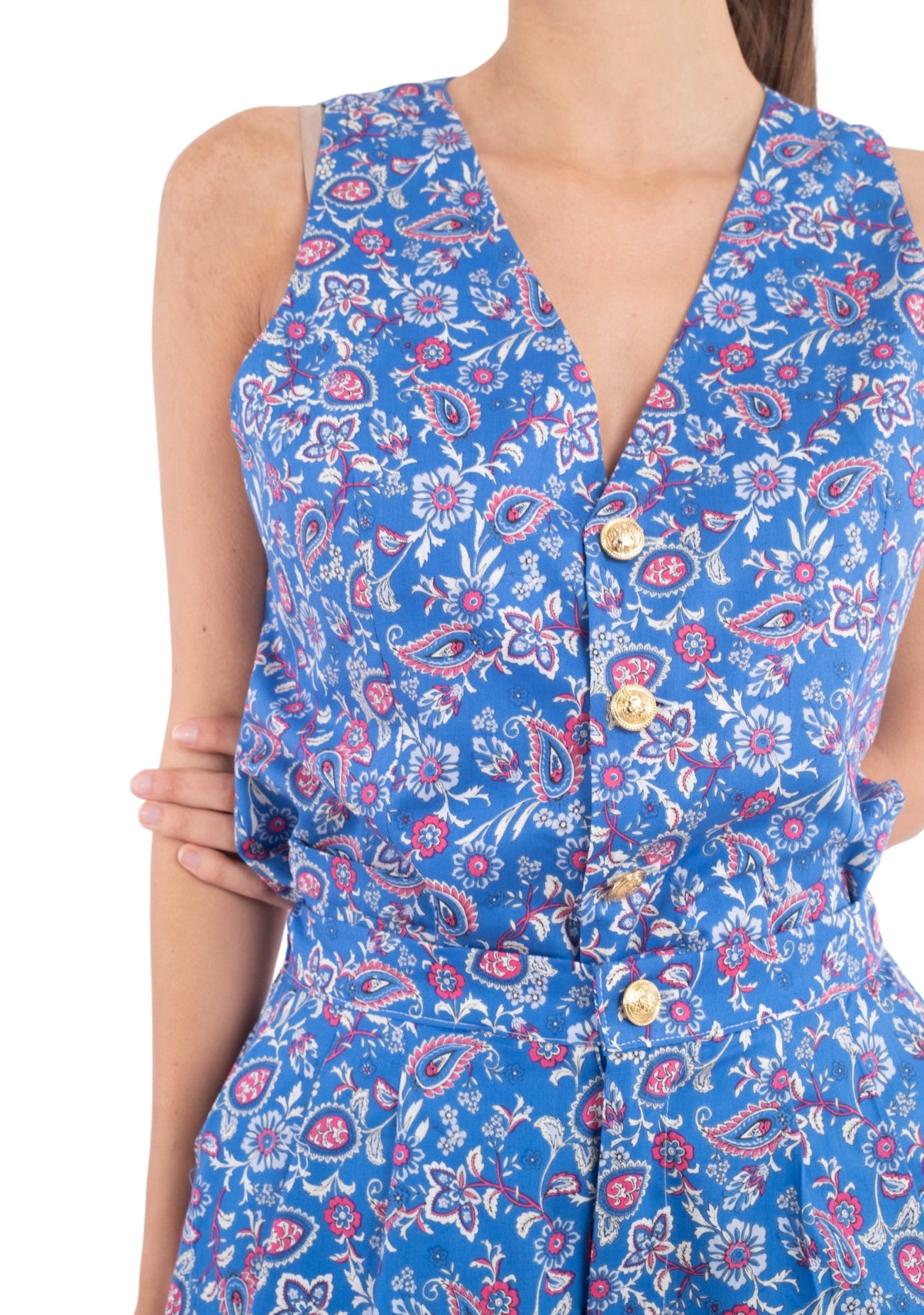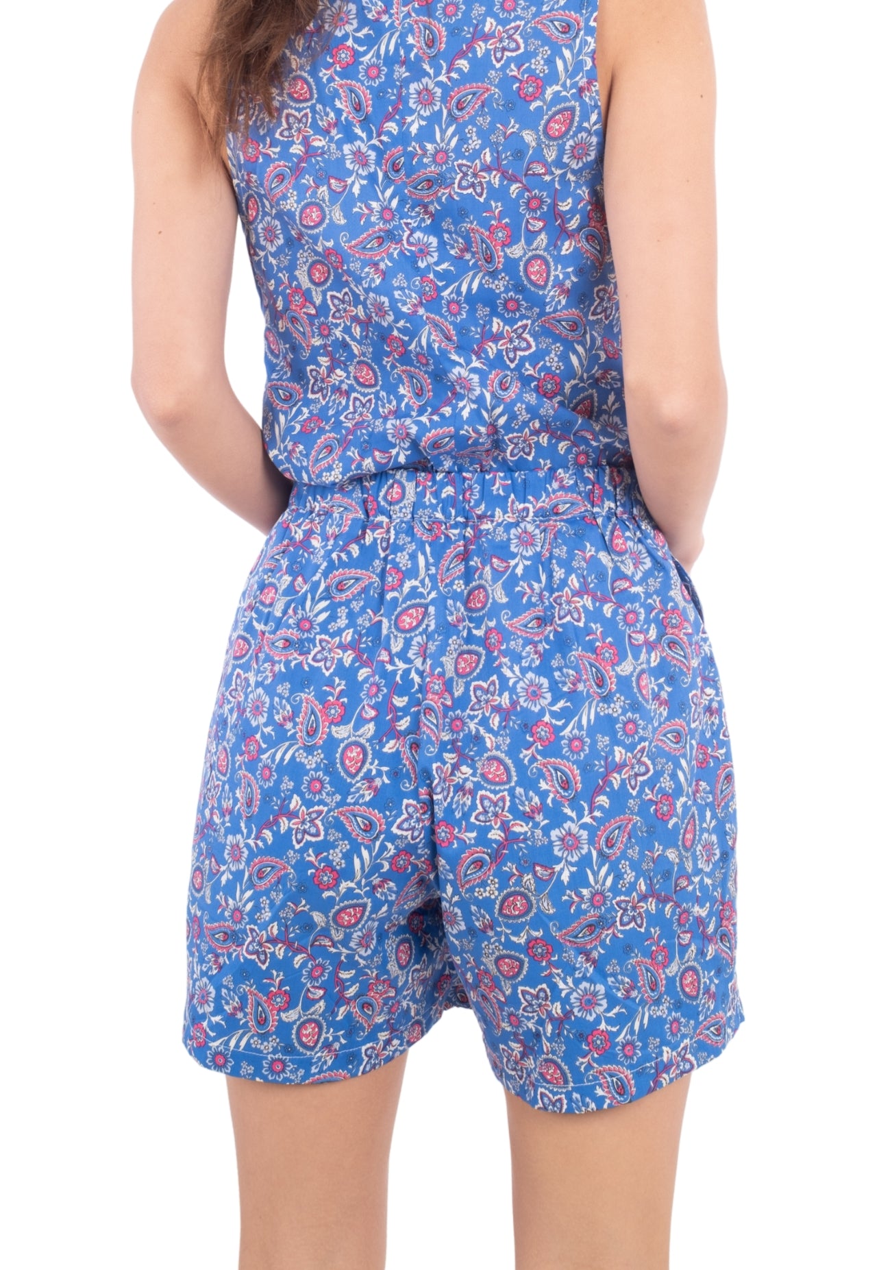Descubre Marquise, un sofisticado traje estampado que combina un chaleco tipo vest y un short con pinzas, diseñado para quienes buscan estilo y comodidad en los días de verano.