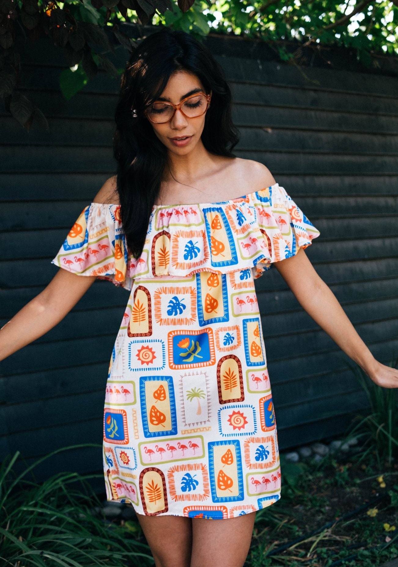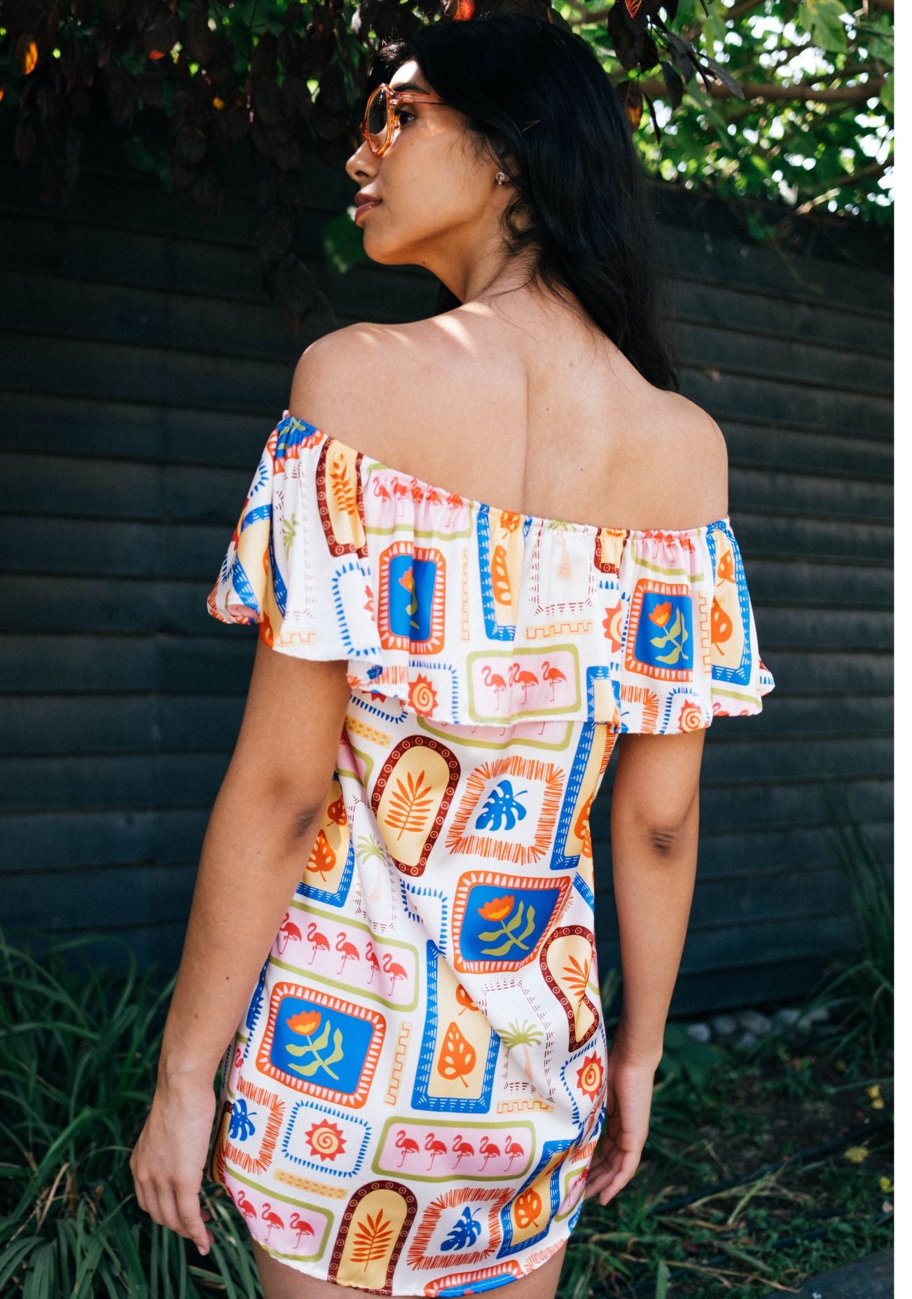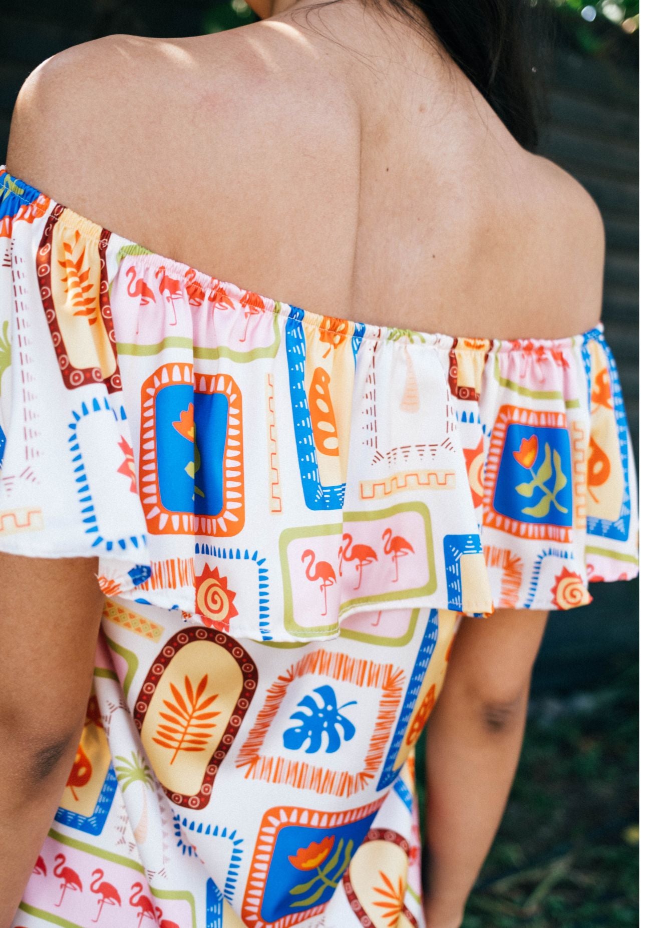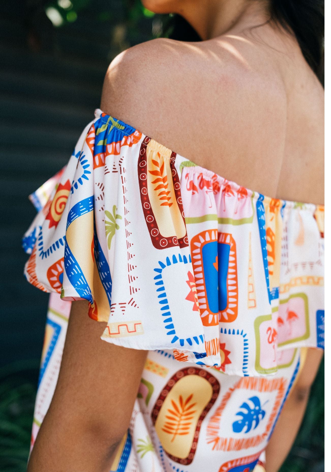 Este estampado es energía pura en color. Una mezcla vibrante de tonos cálidos y alegres que transmiten movimiento, libertad y ese “sí” interno a disfrutar, con vuelos que te envuelven y acarician.